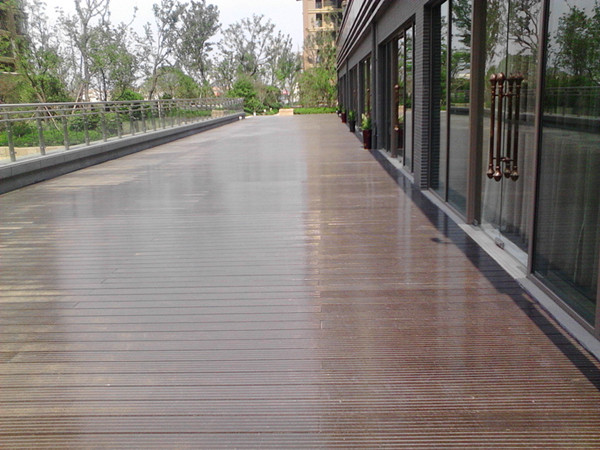 江宁藏龙御景项目由雅居乐地产开发,其中小区内三千多平方米的塑木地板景观给到过这里的人们留下颇深的印象。黑灰色的格调与周边建筑物极为协调,木质的质感与水景融为一体。塑木材料的使用为小区景观增色不少。