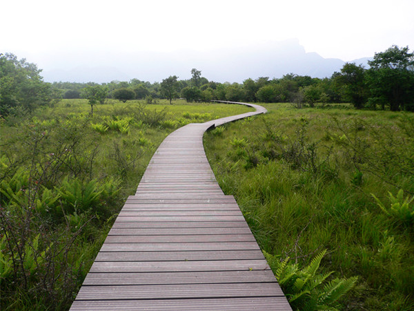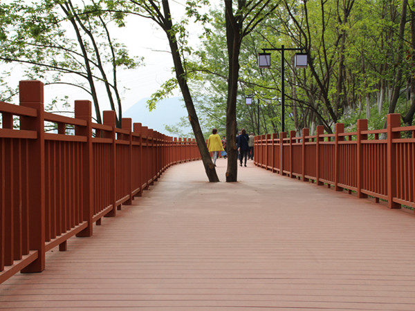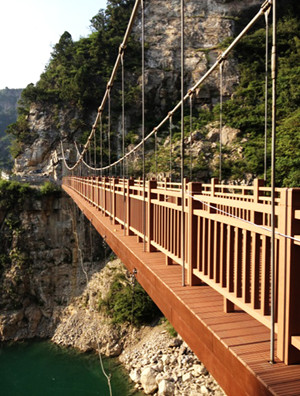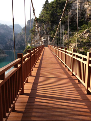 巍峨的高山,险峻的地势,长长的吊桥,望之惊心动魄。除了观赏美景之外,还要关注莫过于吊桥的安全性,塑木材料很好的弥补了原木的缺点,如防潮防水防虫等。在达到相同的视觉效果的同时,又保证了材料的安全性与耐用性。