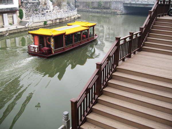 古老的秦淮河,承载着太多的历史,它见证了朝代更替的繁华与没落,也见证了才子佳人的婉转柔情。夫子庙内,画舫凌波,华灯映水;河畔的栈道围栏简单、优雅,驻足其中,看着秦淮河美景,体会不同的心境。