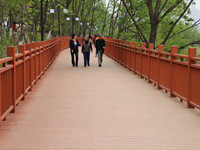 红色的栈道,绿色的树木,构成一幅色彩浓烈的画卷。与二三好友在此散步,说不出的惬意。