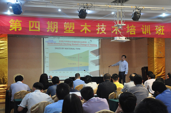 9月20日,我有幸和生产部范明飞经理一起参加了由塑木协会、南京聚盈科技发展有限公司举办的“第四期塑木技术培训班”的活动。会上宋维宁博士介绍了塑木的历史、发展及现状,以及对美国调研的塑木使用情况等;宁波禾隆新材料有限公司的张之敬总经理介绍了PE共挤塑木的优缺点和发展现状;东莞市汉维新材料科技有限公司王玉梅高级工程师为我们讲述木塑生产过程的控制要点及检测方法;以及天祥集团中国区的张伟、湖北安信塑料模具有限公司的李小峰等专家为我们系统的讲解了塑木型材欧洲标准变化的应对方法和模具等问题。