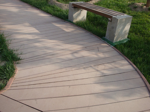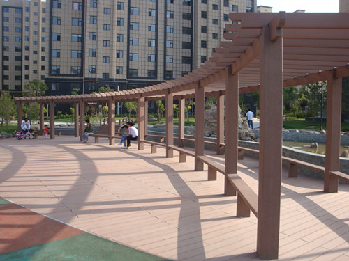 项目应用于宁夏的一个居住小区里。通过回访,项目经过一年多时间,现场看到的材料都挺好。地板选用的是浅红色加上泥土灰尘显得老旧,其他的装饰和栏杆因为颜色选用的亮红色,在西北强光照使用下几乎没有变色,光鲜如初。