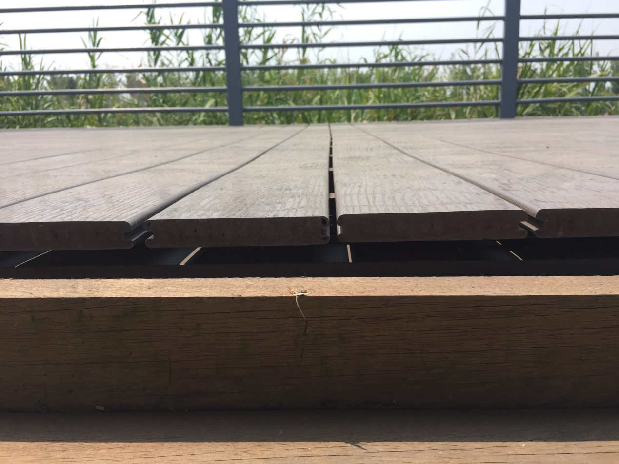 在这个被水包围着的地方,在南京这个一年温差超过50℃的城市,我们的塑木地板经受住了考验,三年的风风雨雨并没有使他屈服,过去、现在、将来,他都将坚挺的矗立在这片土地上,服务于来来往往的行人游客。